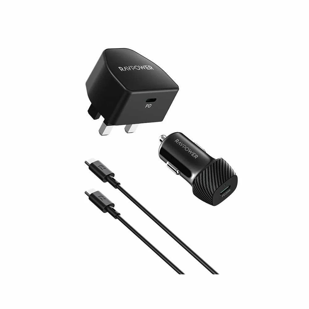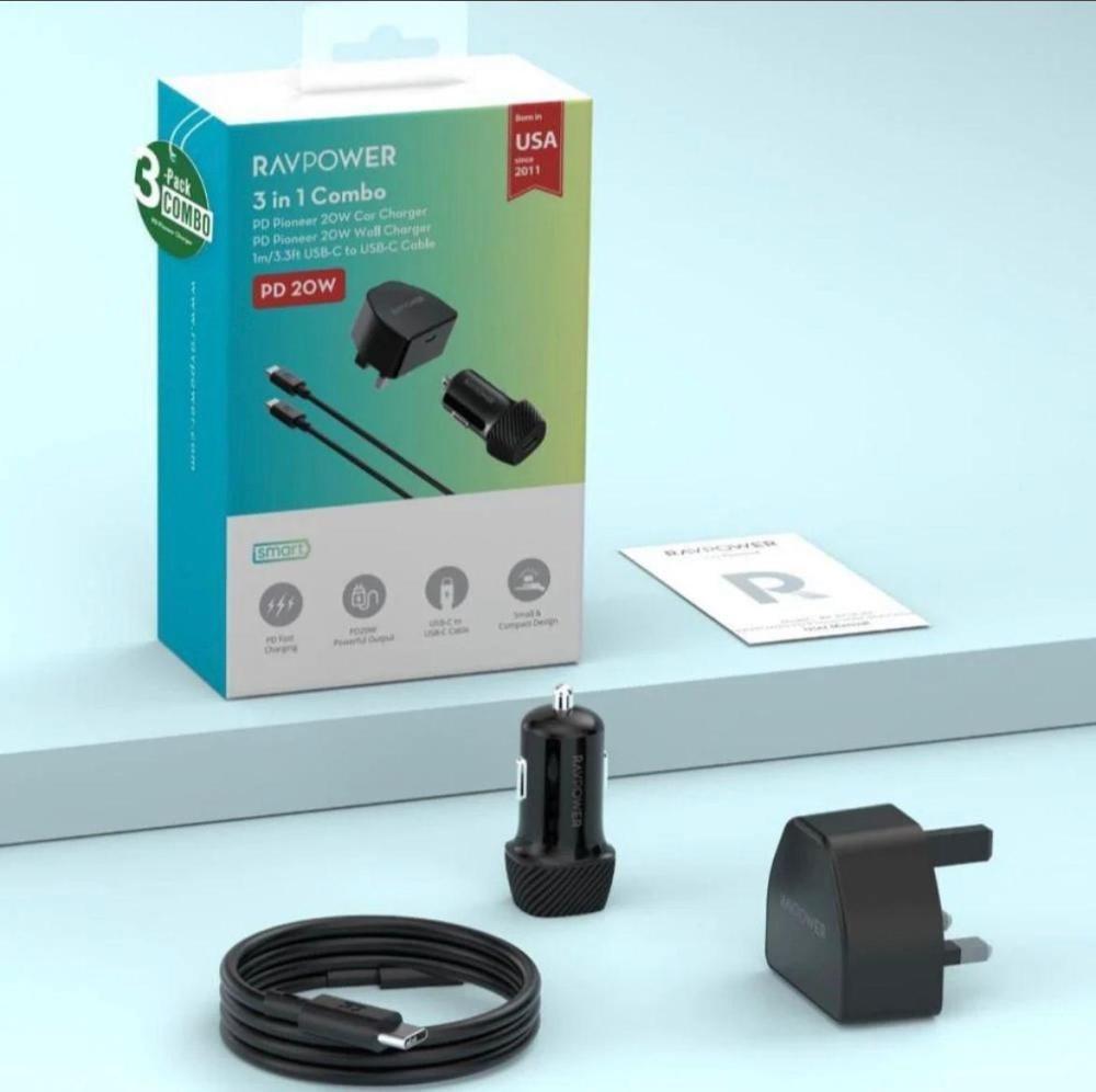 يحتوي البكج على شاحن جداري بقوة 20 واط بتقنية Power Delivery، وشاحن سيارة سريع، بالإضافة إلى كيبل تايب سي إلى تايب سي عالي الجودة.